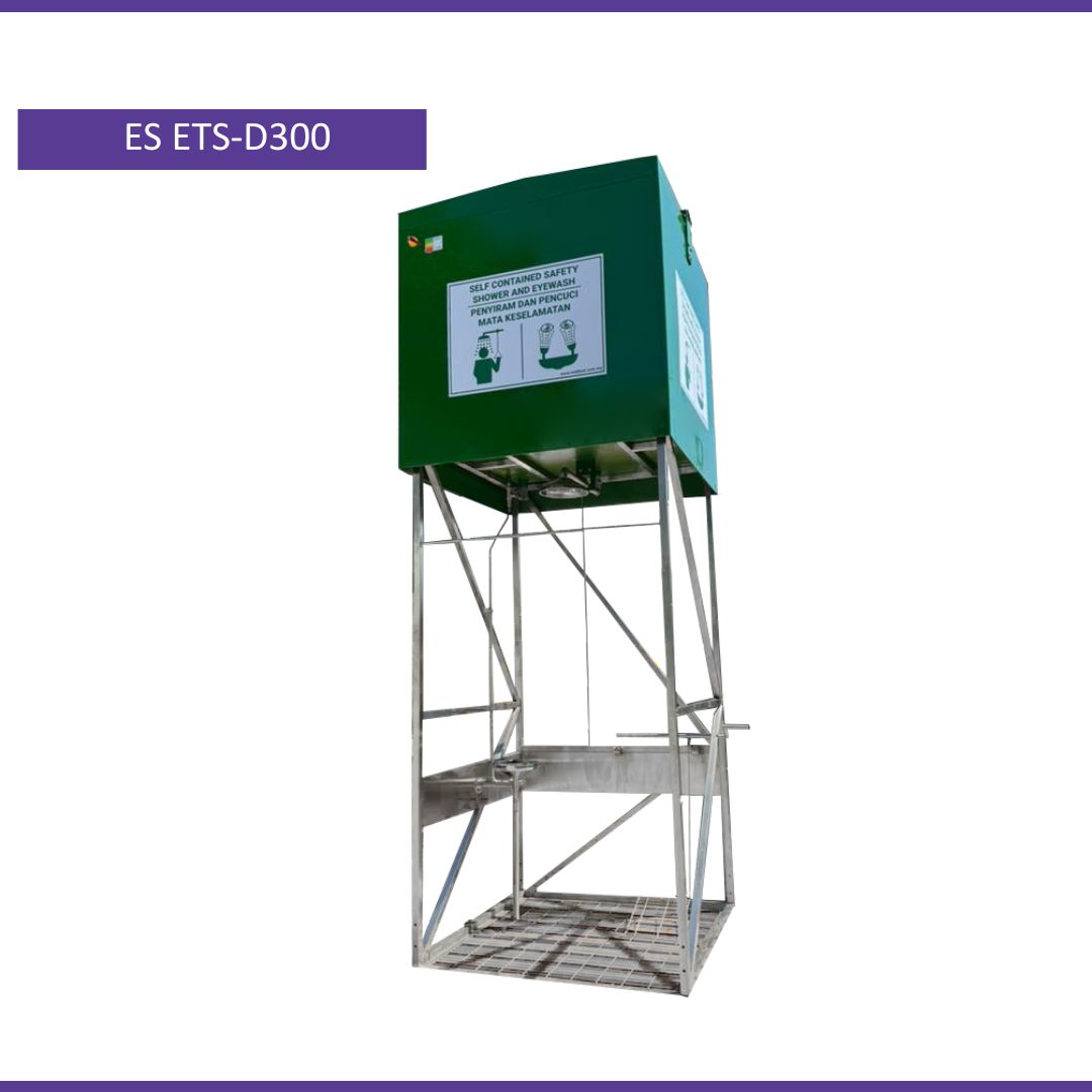 A self contained shower system designed for outdoor and indoor where supply of water may not be consistent. With a 1500 litre capacity tank, the ES ETS-D300 model will provide continual shower for 15 minutes as required by ANSI Z358.1 standards. System is available with multiple optional enhancement.