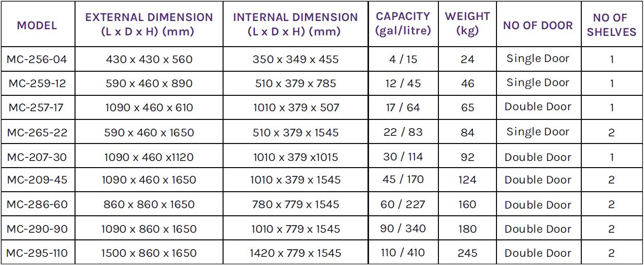 PRODUCT: CHEMICAL STORAGE CABINET – MC-CHEMICAL SERIES