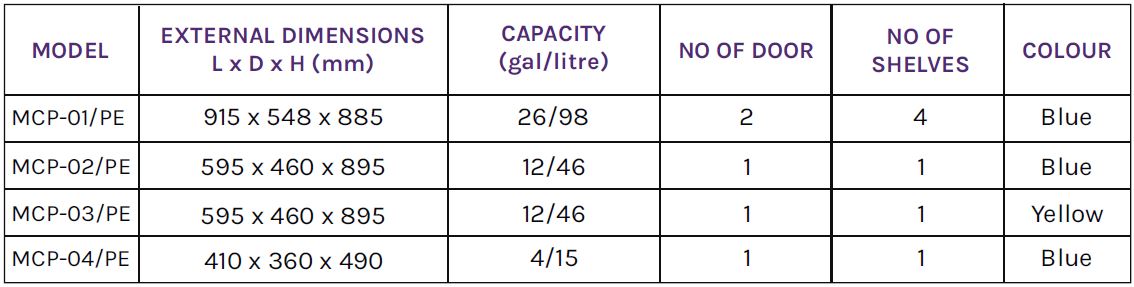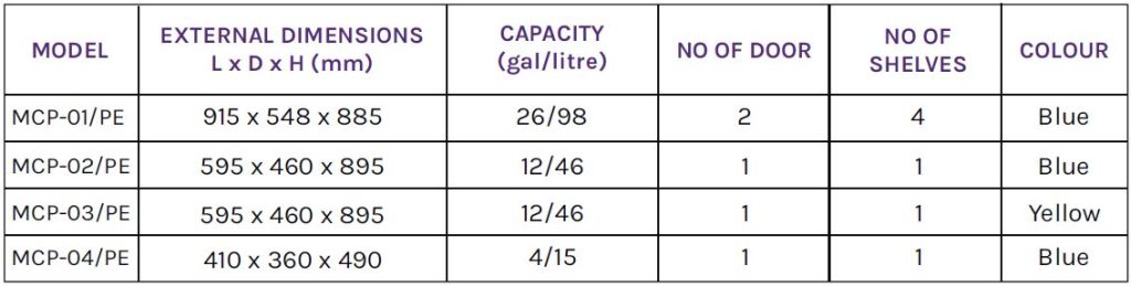 PRODUCT: POLYETHYLENE CORROSIVE ACID STORAGE CABINET (MCP SERIES)